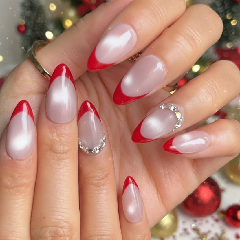 Entre rouge velours, doré scintillant et reflets givrés — l’esprit de Noël s’invite sur tes ongles. ❄️