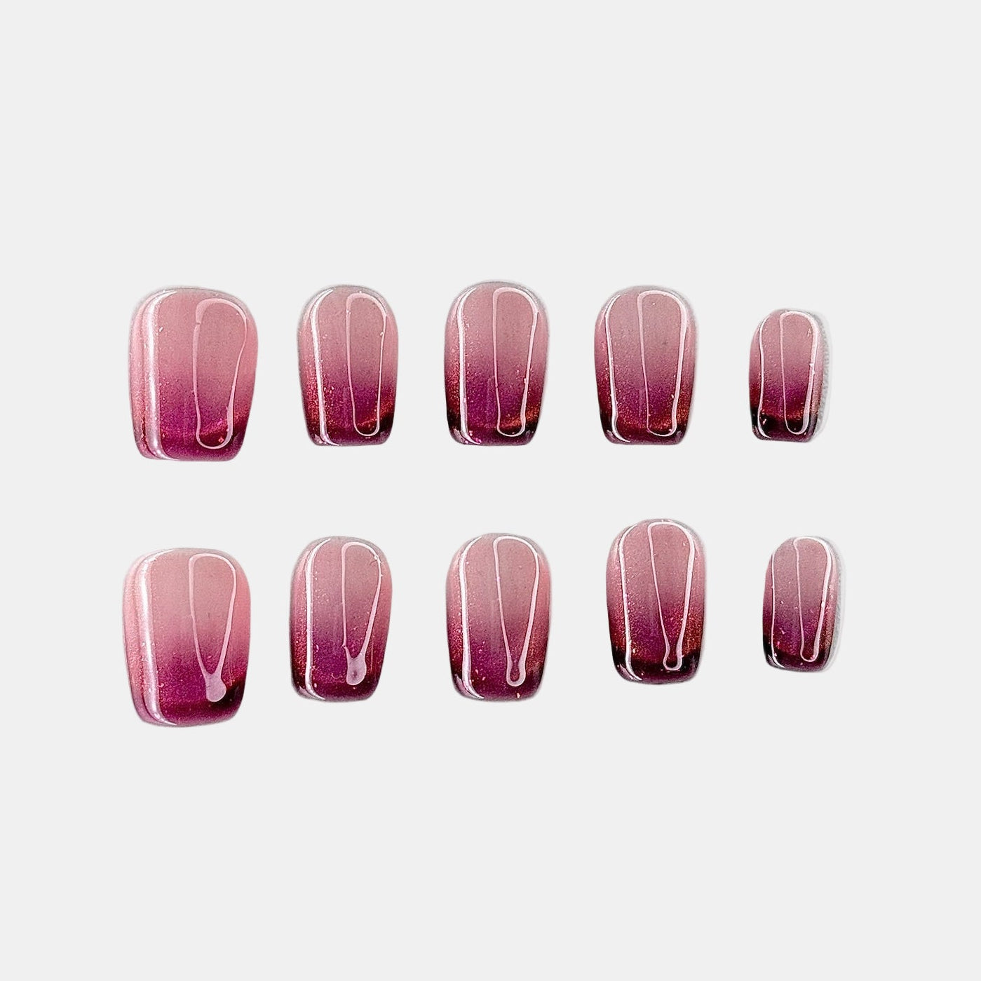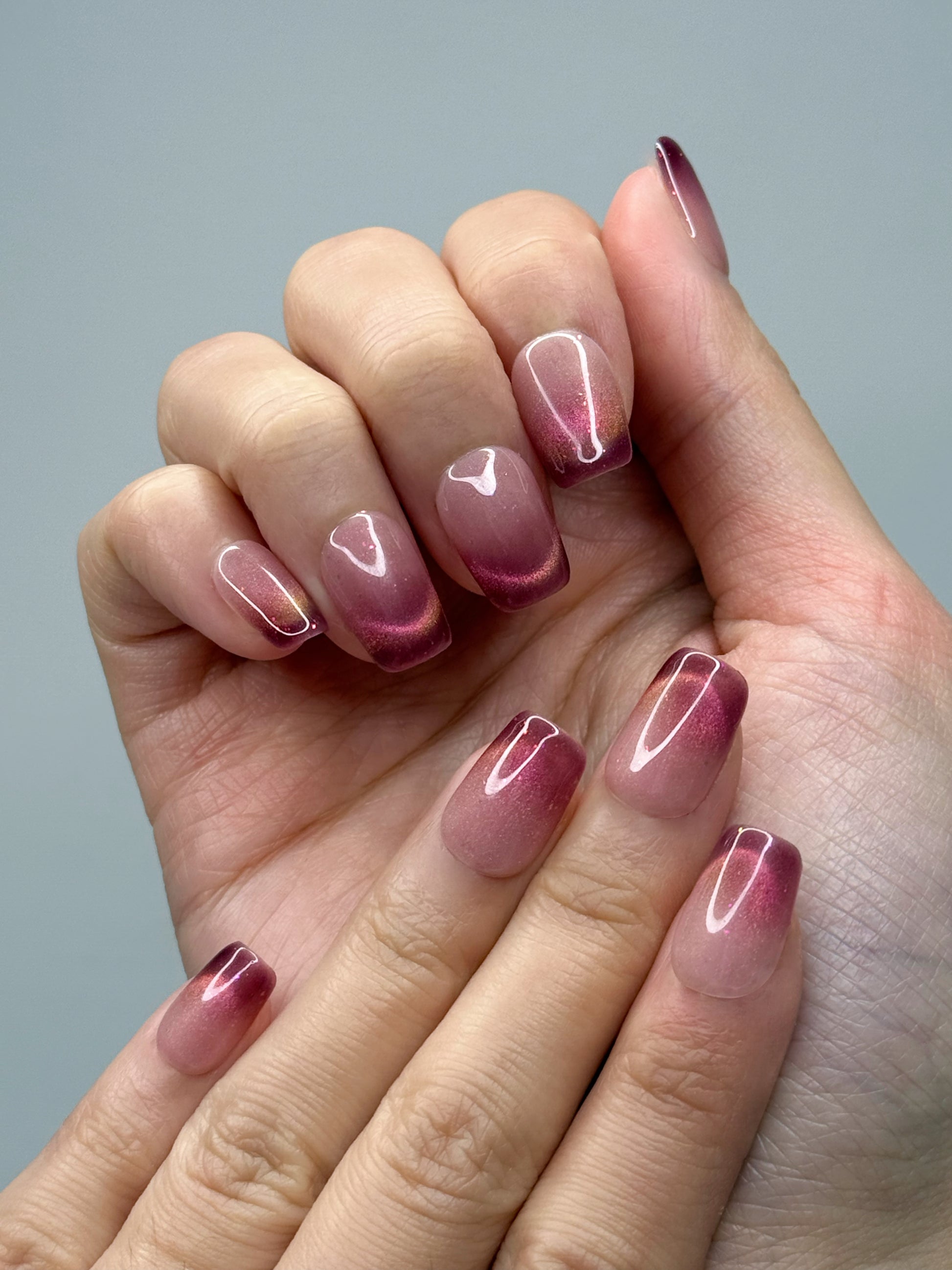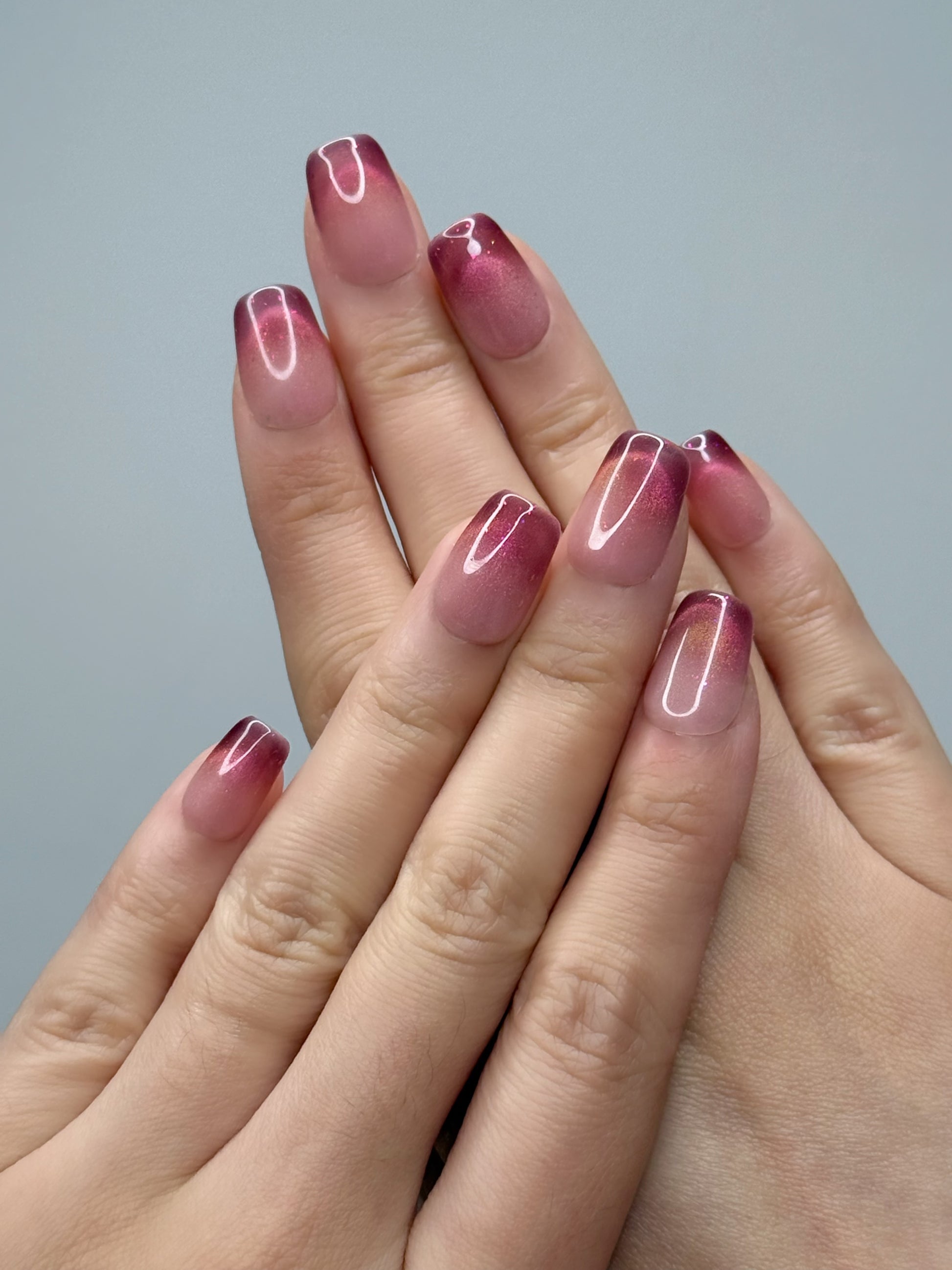 Blushy, ce sont des press on nails au rose fuchsia intense, sublimés d’un dégradé pailleté scintillant. Un look pétillant, féminin et audacieux qui apporte instantanément une touche glamour à tes mains.