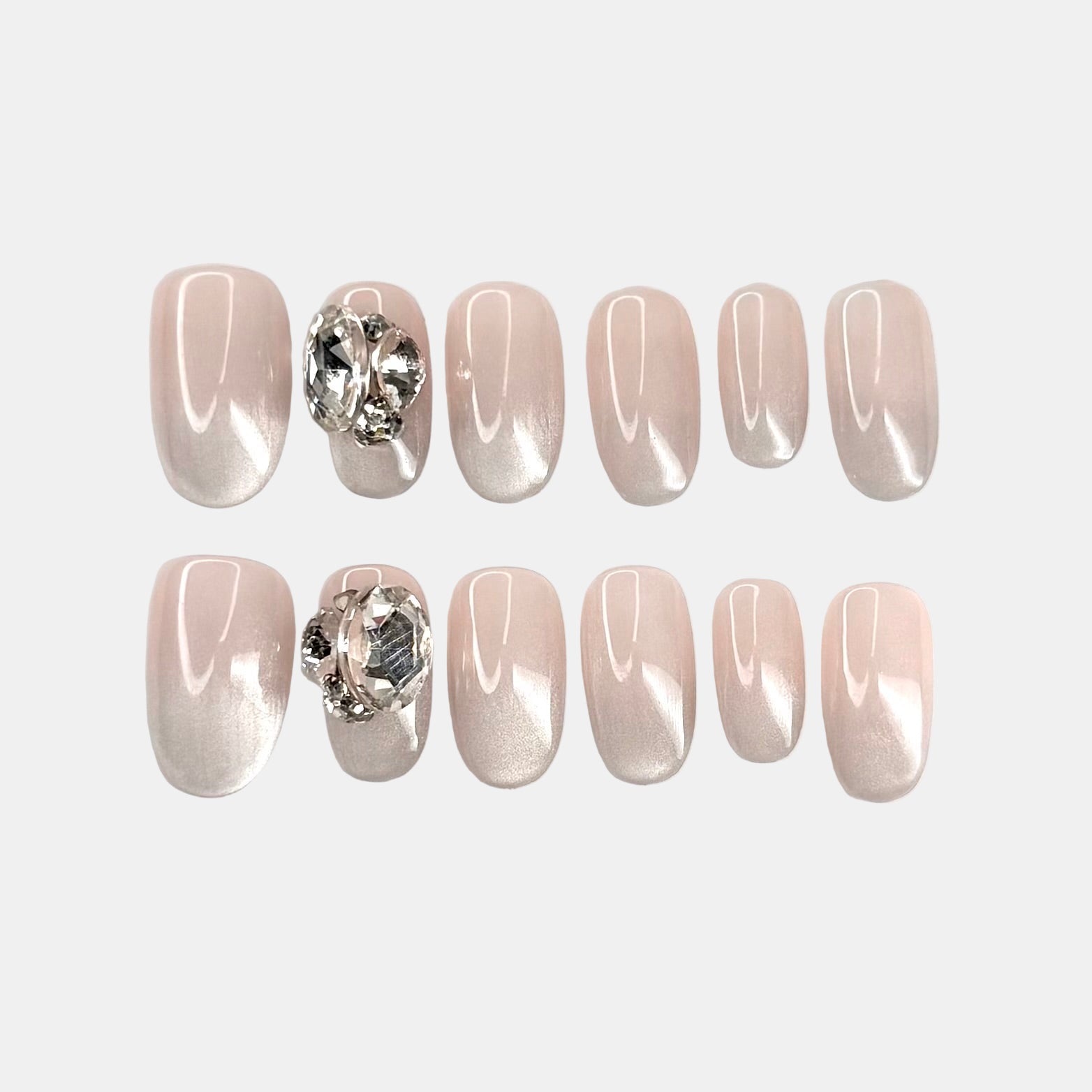 Faciles à poser et réutilisables, ces press on nails offrent une manucure délicate en quelques minutes. Nude Bloom, c’est la pureté du nude réinventée — avec ou sans diamant selon ton style 🤍✨💅